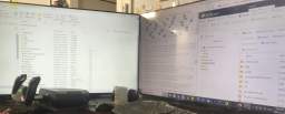 With 4 screens, 3 webcams, and 2 keyboard/mouse combos, there's plenty of elbow room and screen space for 2 people to collaborate.